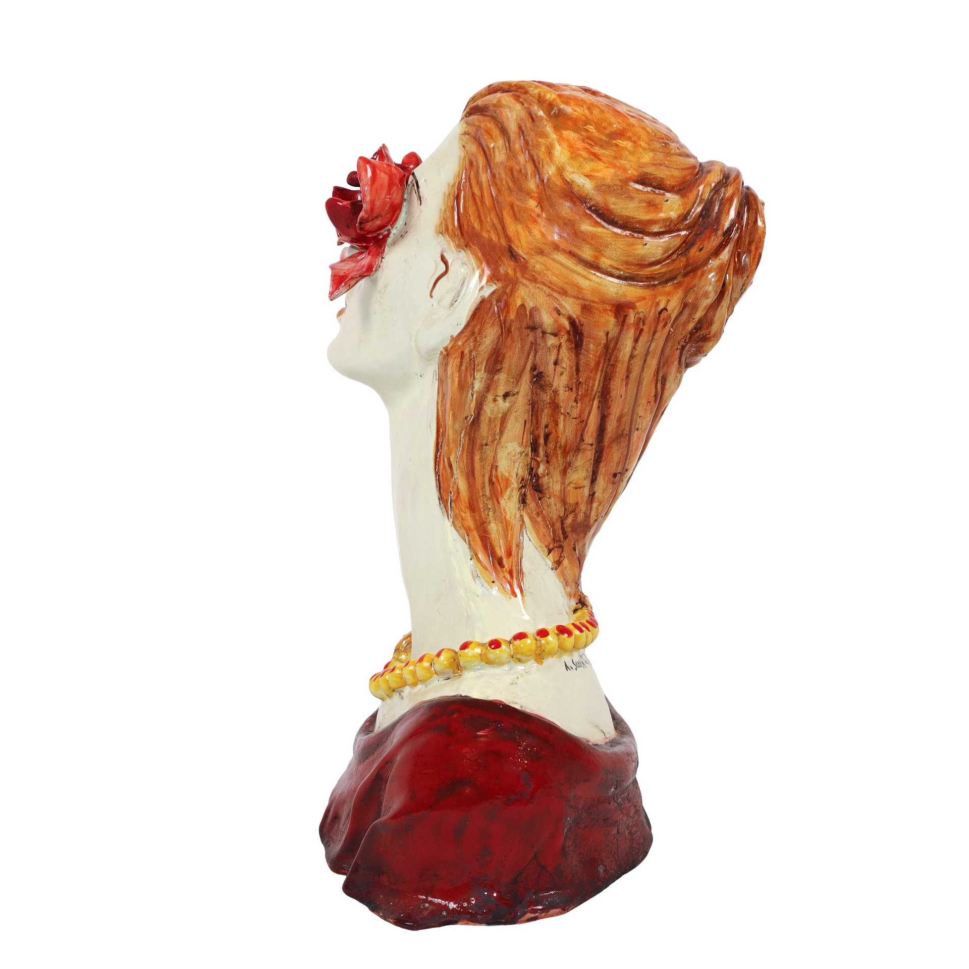 Ceramiche e presepi d'arte Scarlatella - Busto di donna con fiori negli occhi h cm 34