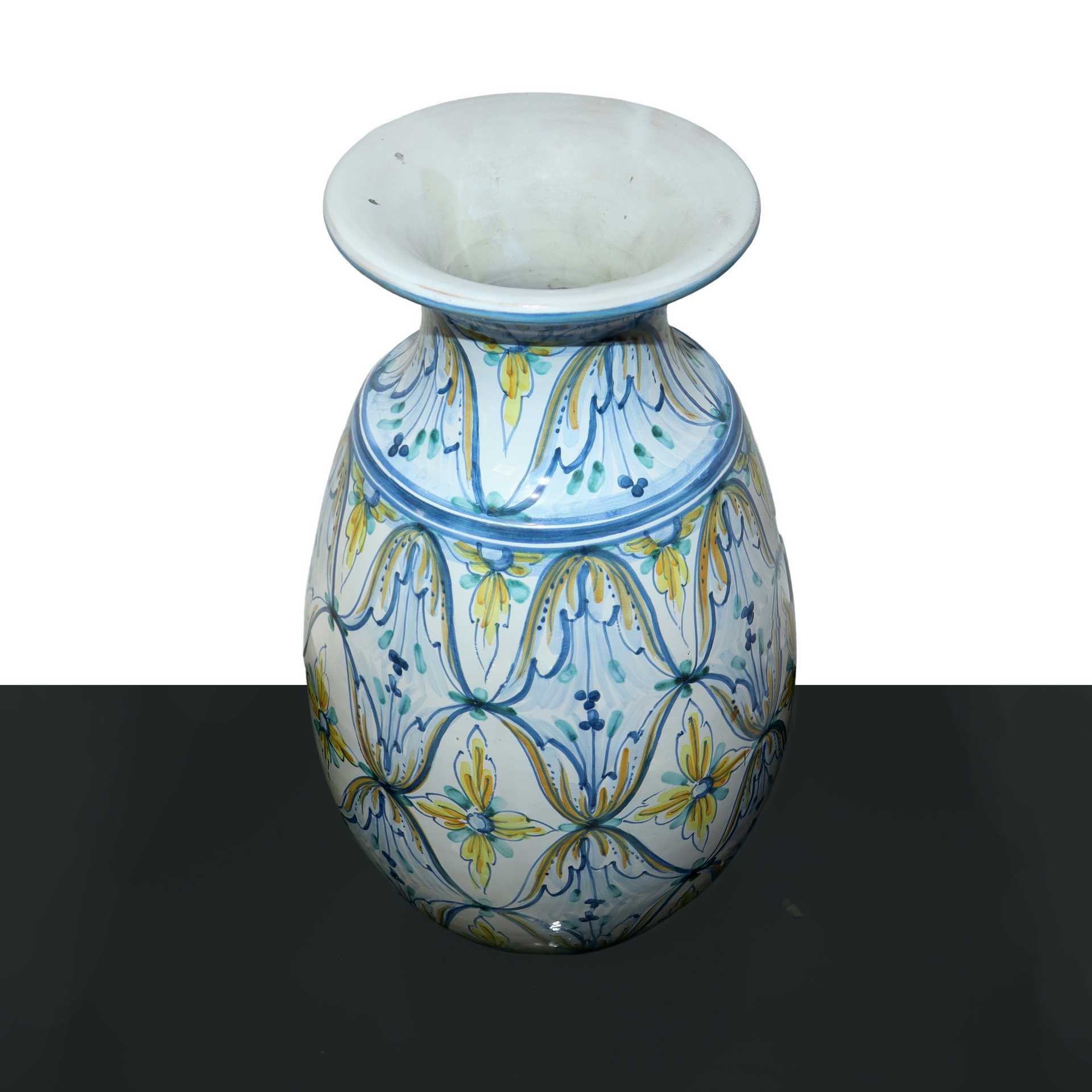 Ceramiche Brancaleone Caltagirone - Vaso in maiolica di Caltagirone dipinto a motivi floreali, 20° secolo h cm 41 Firmato alla base Brancaleone Firmato alla base Brancaleone