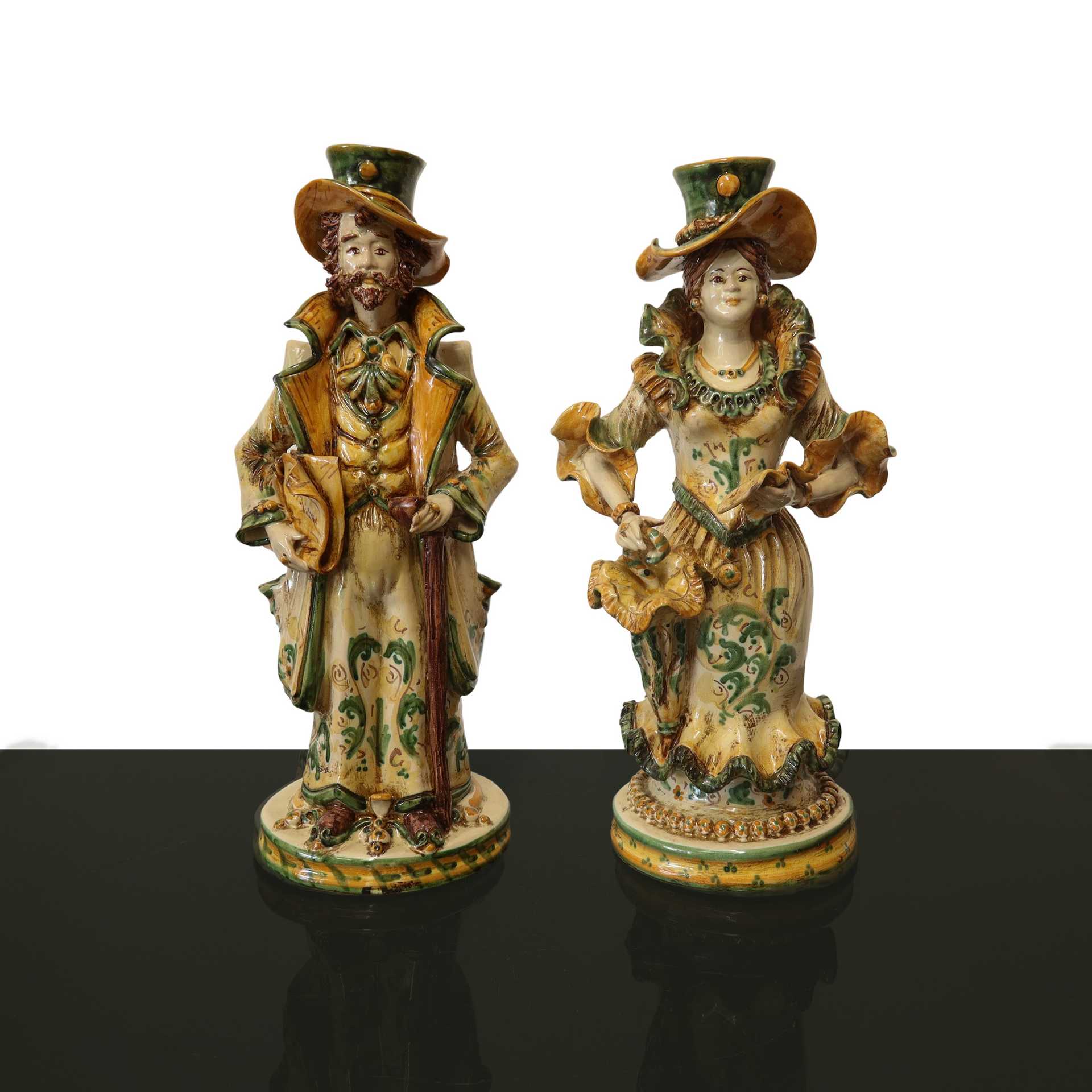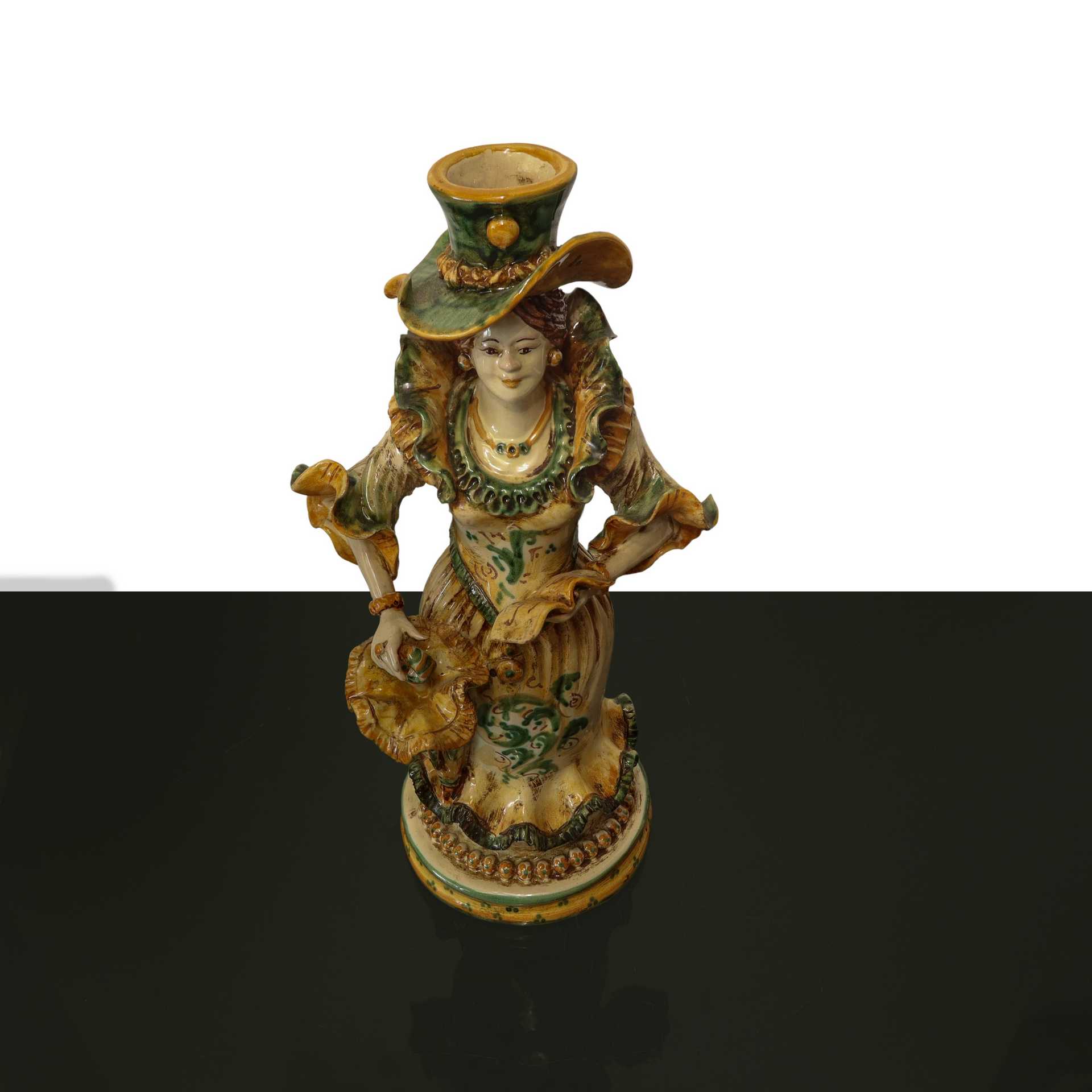 Coppia di lumiere in maiolica policroma invetriatata h cm 32 Firmate Sofia Caltagirone alla base Firmate Sofia Caltagirone alla base