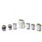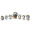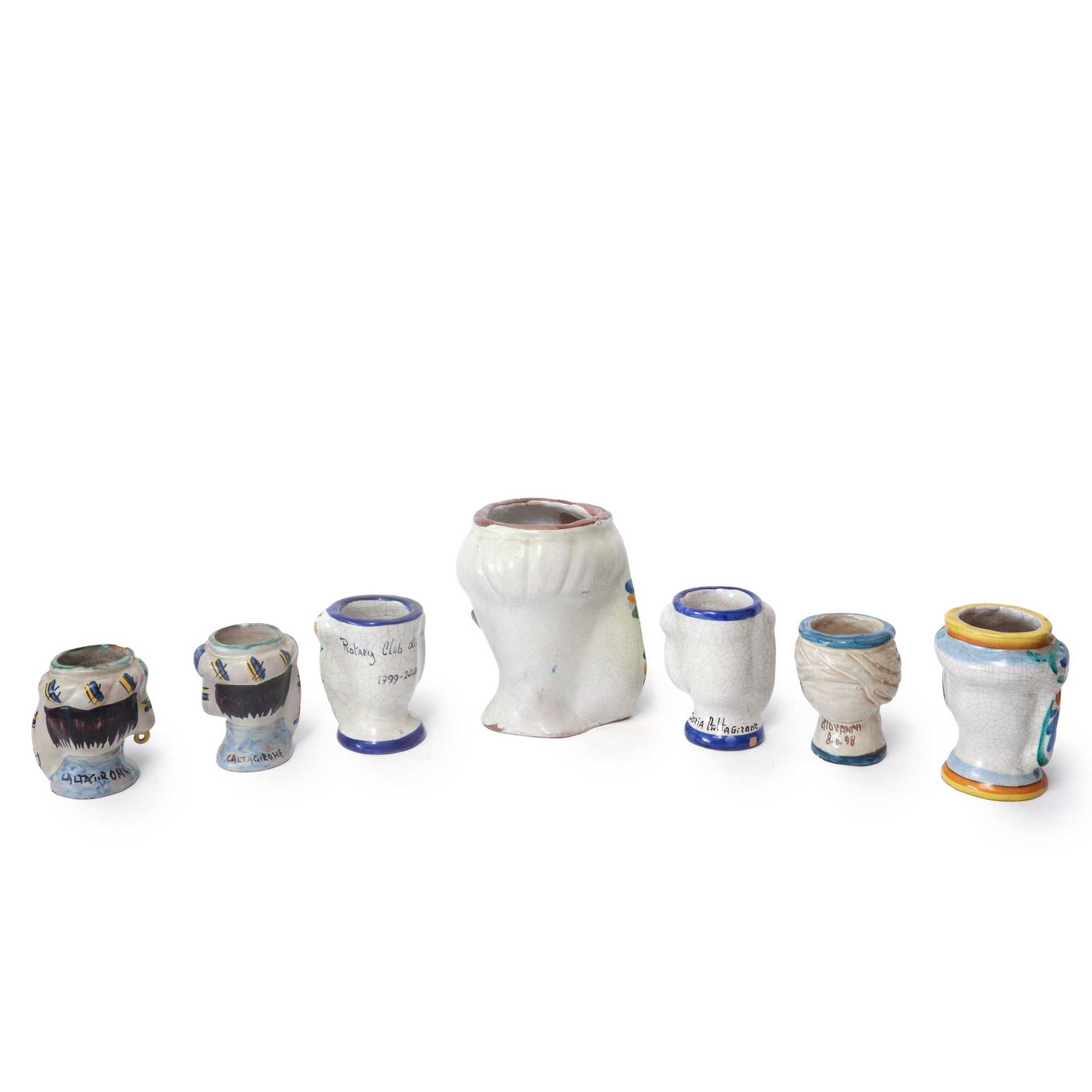Gruppo di N. 7 teste antropomorfe in ceramica di Caltagirone., 20° secolo Grande h cm 13,5x 12, piccole cm 9x7 Piccola sbecccatura su una delle testePiccola sbecccatura su una delle teste