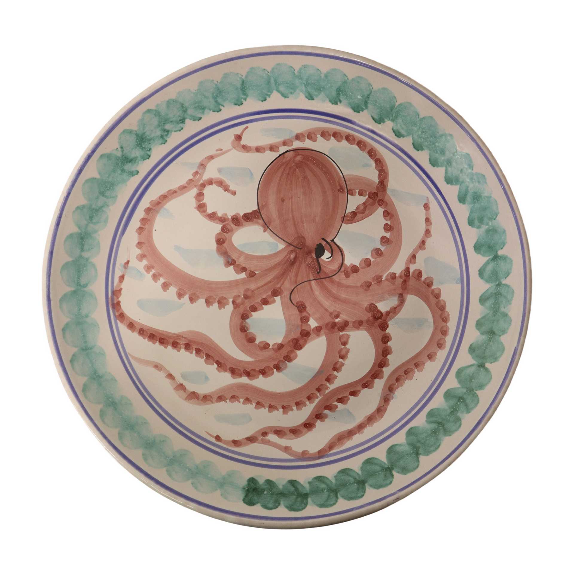 Coop Ceramiche Santo Stefano di Camastra - Grande piatto in ceramica di Santo Stefano di Camastra policromo con raffigurazione di un polpo, 20° secolo