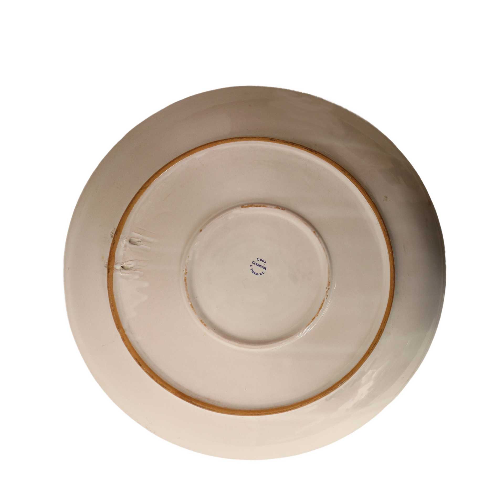 Coop Ceramiche Santo Stefano di Camastra - Grande piatto in ceramica di Santo Stefano di Camastra policromo con raffigurazione di un polpo, 20° secolo diametro cm 43 Marchio della manifattura sul retro Marchio della manifattura sul retro