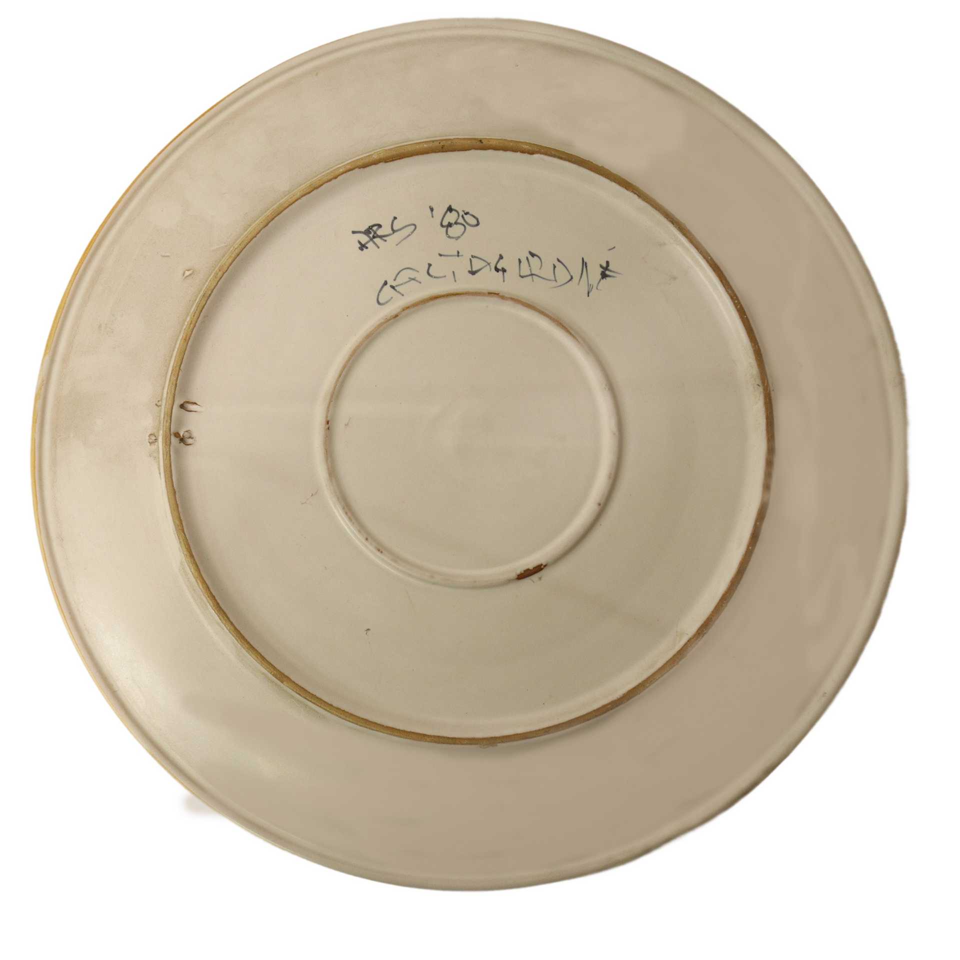 Grande piatto decorativo da muro in ceramica di Caltagirone raffigurante fiore Diametro cm 41
