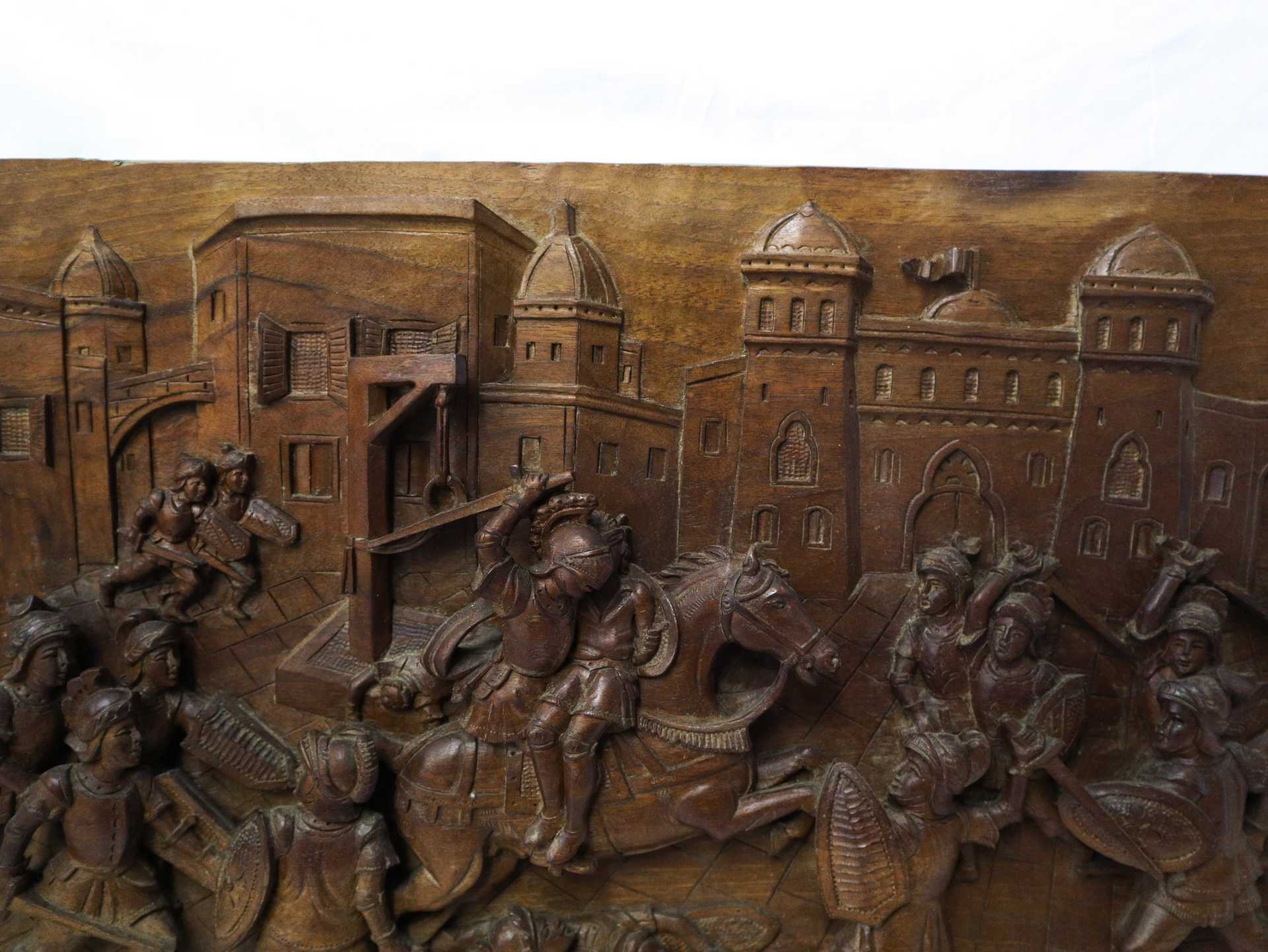 Lot 146 | Ignazio Russo - Pannello ligneo scolpito e intagliato a rilievo e bassorilievo su legno di noce , Scena della Chanson de Roland dei paladini di Francia , First half of the 20° secolo