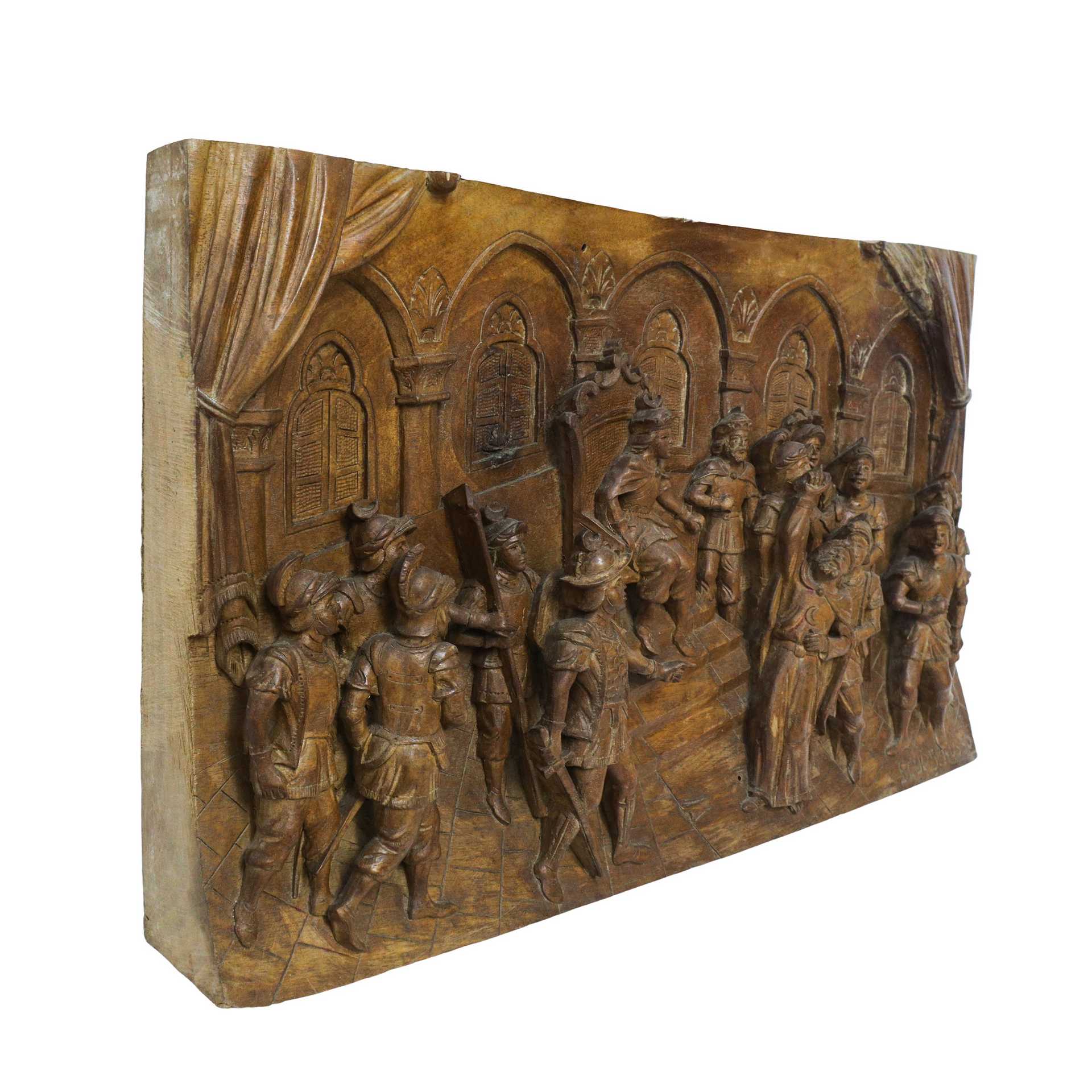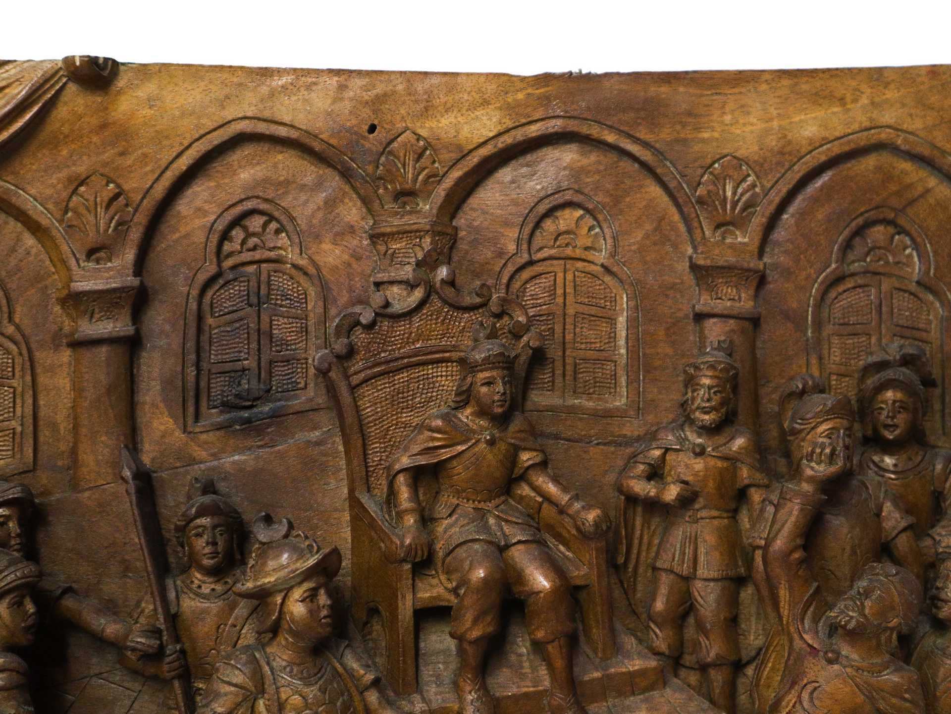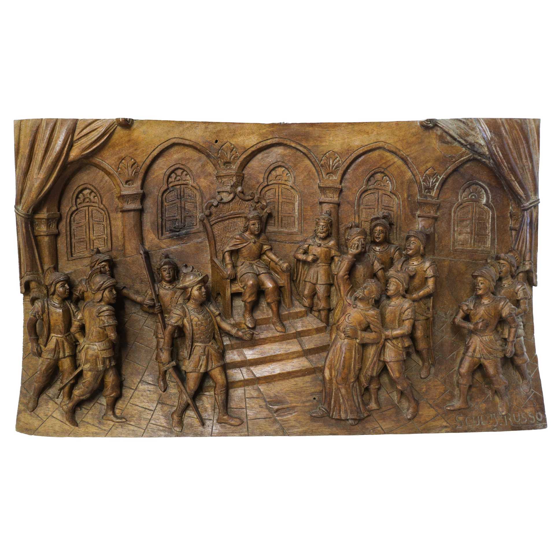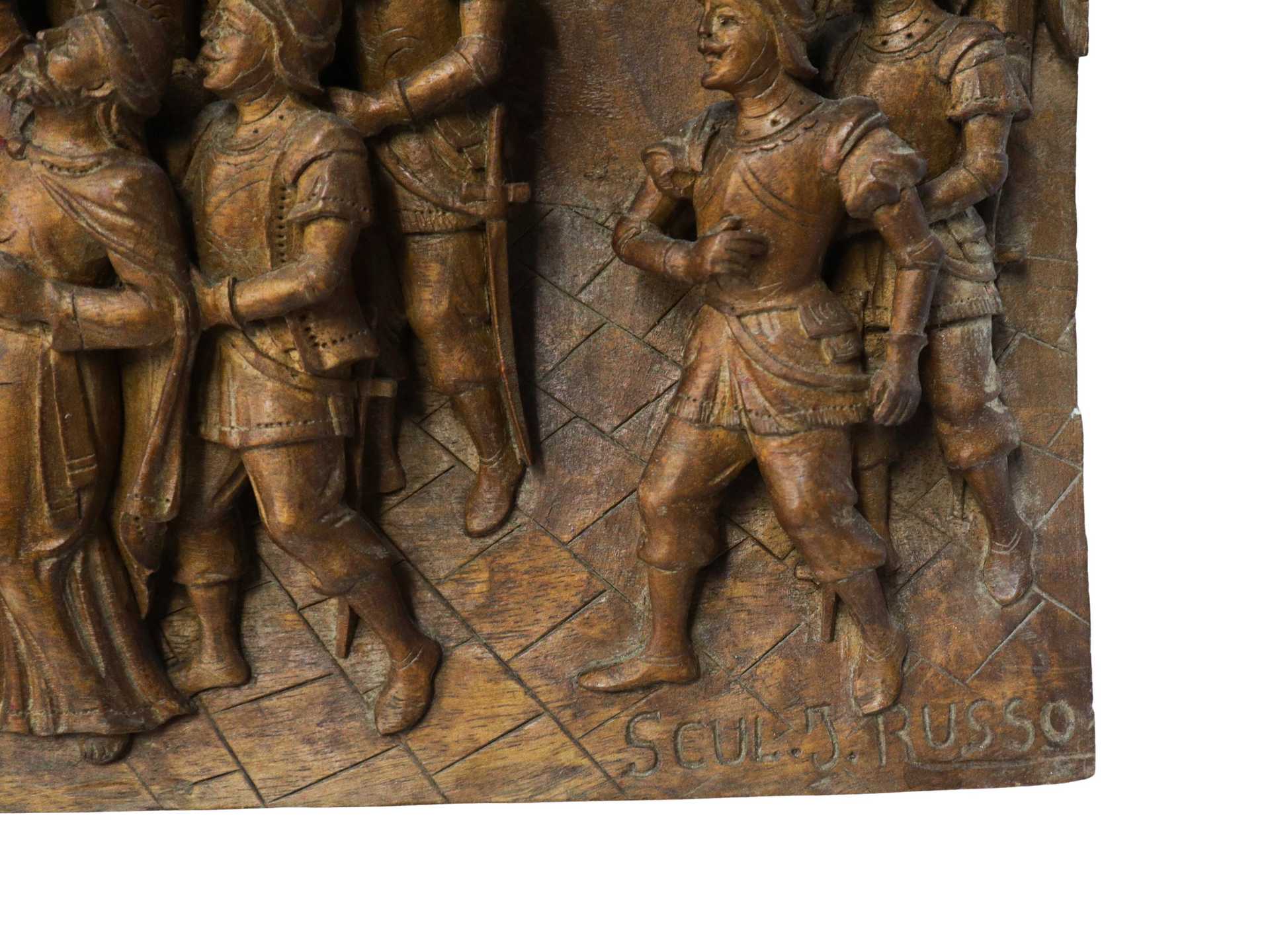 Ignazio Russo - Pannello ligneo scolpito e intagliato a rilievo e bassorilievo su legno di noce , Scena della Chanson de Roland dei paladini di Francia , First half of the 20° secolo
