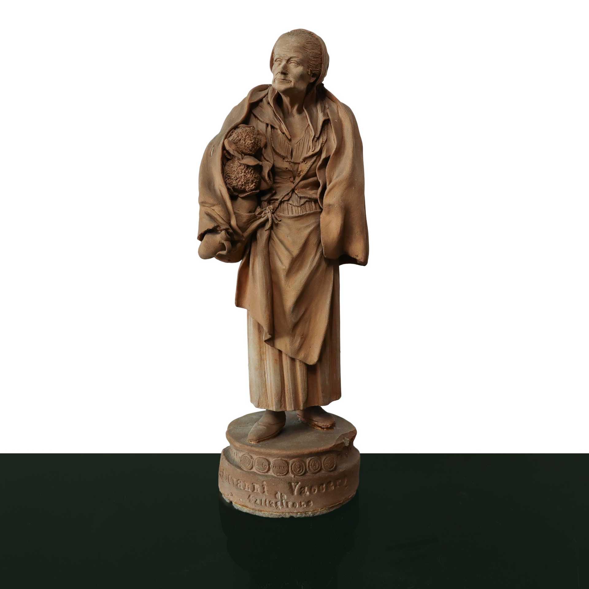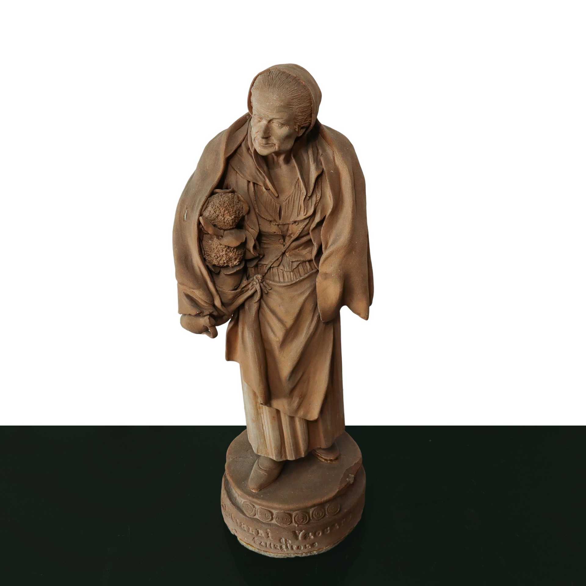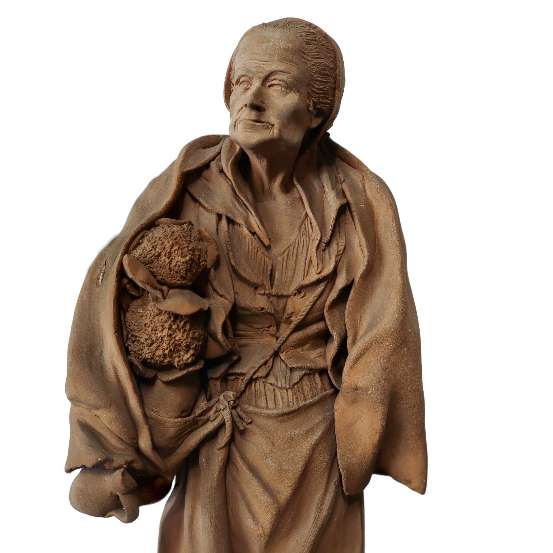 Bongiovanni Vaccaro (Caltagirone 1807 - Caltagirone 28 novembre 1889) - Anziana con verdura, scultura in terracotta monocroma