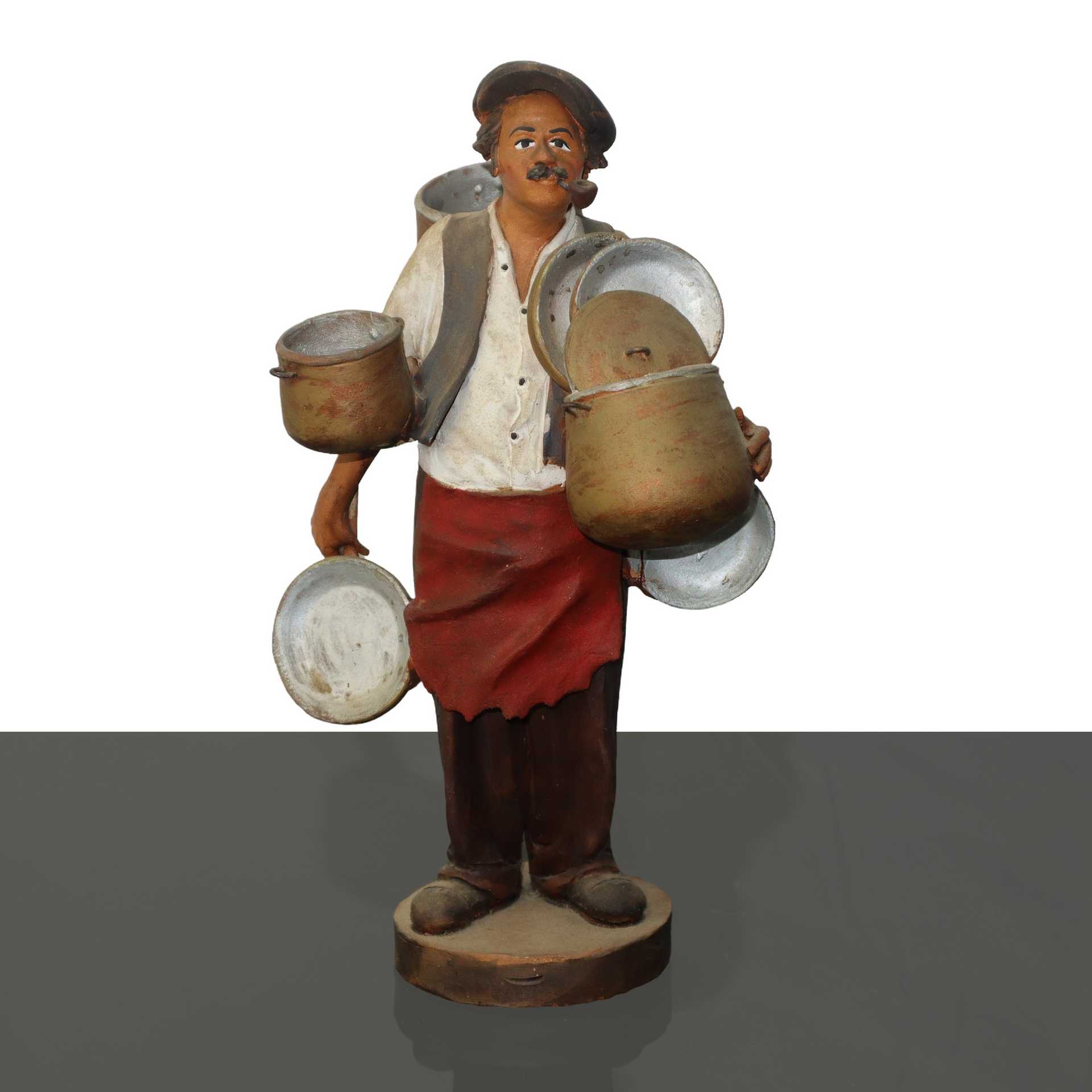 Frate e venditore di pentole in terracotta di Caltagirone policroma, 20° secolo frate H cm 24 - venditore H cm 24