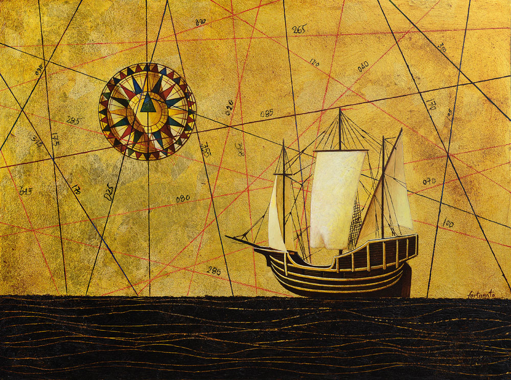 FORTUNATO FRANCO Roma 06/12/1946Le rotte dei desideri 2014olio e collage su...