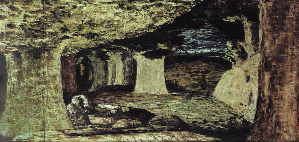 olio su carta giuntata applicata su cartone cm. 35x76, firma e anno in basso a destra.