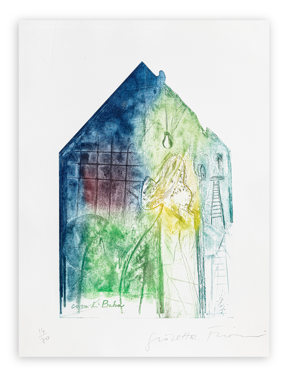 Firma e numerazione (Esemplare 14/70) a matita al fronte