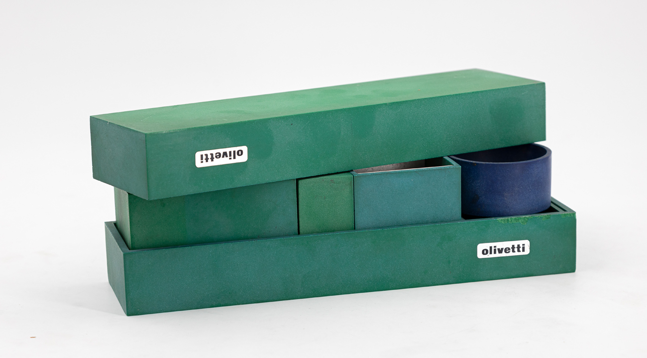 Set da scrivania (scatola + 5 elementi) realizzato in melamina alluminio anodizzato