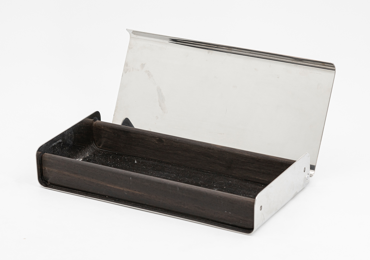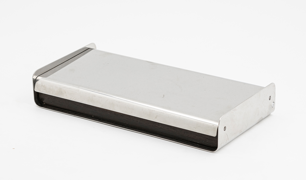 Scatola mod. Citera in acciaio lucido inossidabile e legno di palissandro