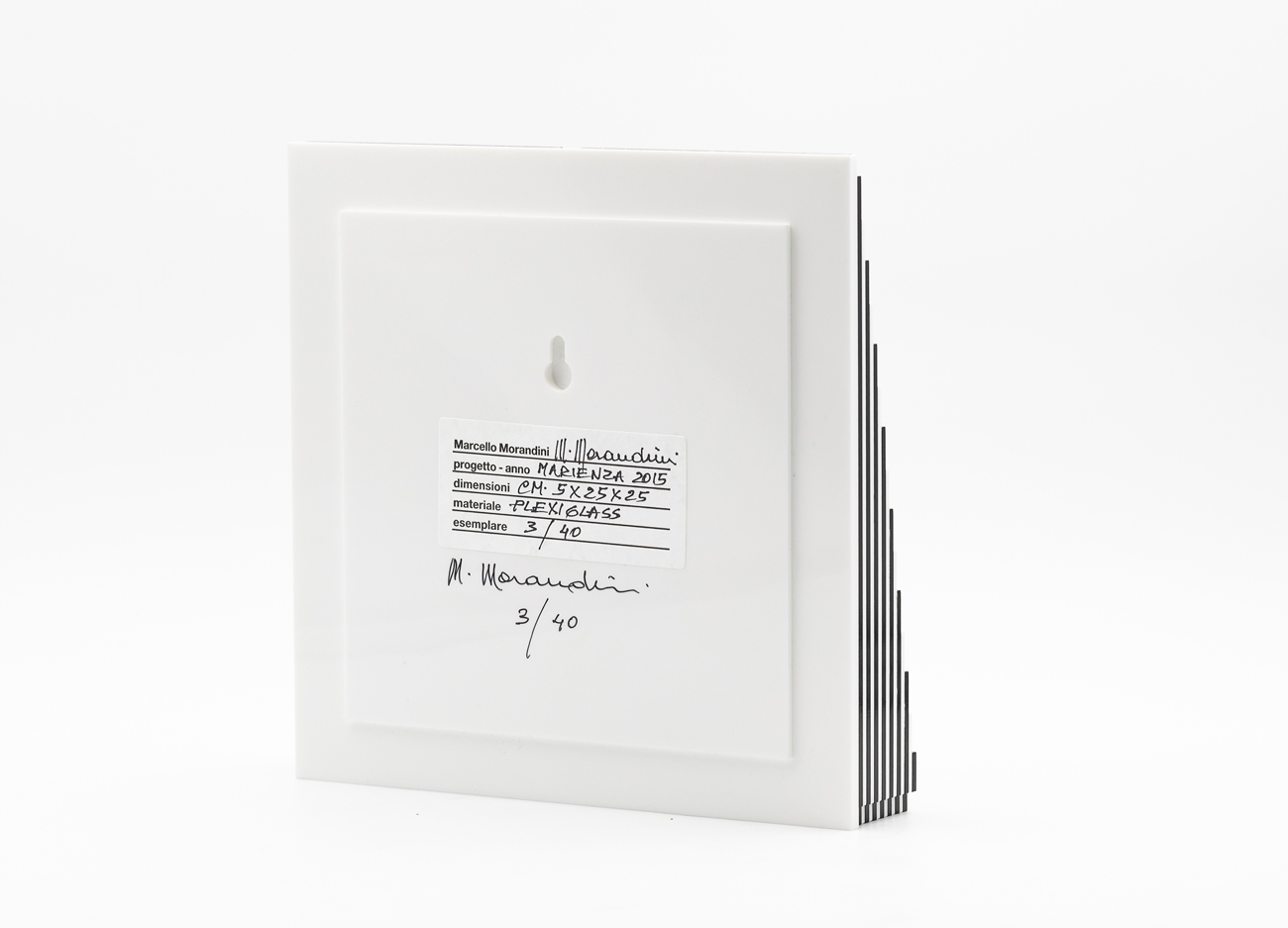 Etichetta dell'Artista recante firma, caratteristiche tecniche dell'opera e numerazione (Esemplare 3/40) sotto la base