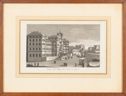 Bella veduta dell'albergo dei Poveri all'acquatinta; insieme nel lotto seguono Vue de l'Albergo e La Vue du Grand Hopital. Bella veduta dell'albergo dei Poveri all'acquatinta; insieme nel lotto seguono Vue de l'Albergo e La Vue du Grand Hopital.
