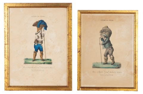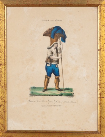 8 tavole litografiche a colori (numerate 31, 34-40) tratte da Duché de Genes. Costumes dessinés sur les lieux (Chez P. Marino, Paris, 1826) splendida raccolta di costumi genovesi litografati da P.S. Levilly su disegni dal vivo di Antonio Pittaluga ed eseguite a Parigi presso la stamperia di Ducarme.