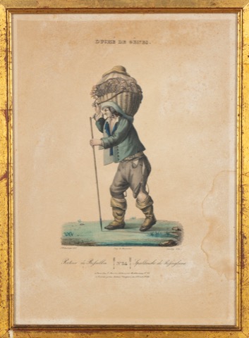 Bibliografia: Colas, 2719. Hiler, 194. Lipperh., 1277. Pitré, 515. Manno, VI, 23893. 8 tavole litografiche a colori (numerate 31, 34-40) tratte da Duché de Genes. Costumes dessinés sur les lieux (Chez P. Marino, Paris, 1826) splendida raccolta di costumi genovesi litografati da P.S. Levilly su disegni dal vivo di Antonio Pittaluga ed eseguite a Parigi presso la stamperia di Ducarme.