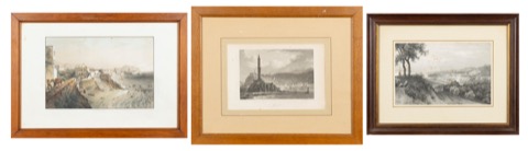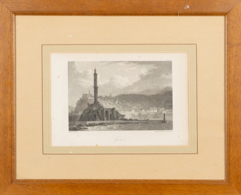 Veduta della citta dalla lanterna disegnata da J. Smith e incisa da W. Byrne; insieme nel lotto altre due vedute di Genova di cui una finemente colorata. Veduta della citta dalla lanterna disegnata da J. Smith e incisa da W. Byrne; insieme nel lotto altre due vedute di Genova di cui una finemente colorata.