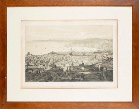 Bella veduta dal promontorio dell'Acquasola, segnata da Guesdon e incisa da Schultz. Vue pris au de sus de l'Aquasola.