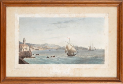 Litografia pubblicata da Lemercier, suggestiva veduta colta da ovest verso il porto, acquarellata coeva. Litografia pubblicata da Lemercier, suggestiva veduta colta da ovest verso il porto, acquarellata coeva.