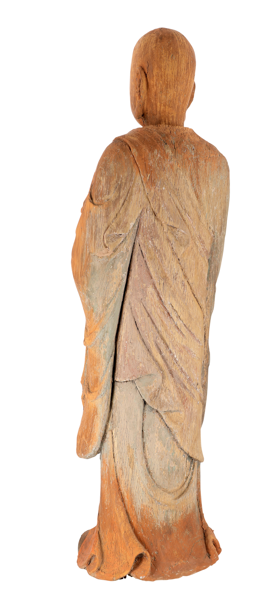 Scultura in stile Ming, recentemente ridipinta. Per fattura il lotto sembra databile al XX secolo, ma non è stata effettuata alcuna datazione dei materiali attraverso strumentazione scientifica.
