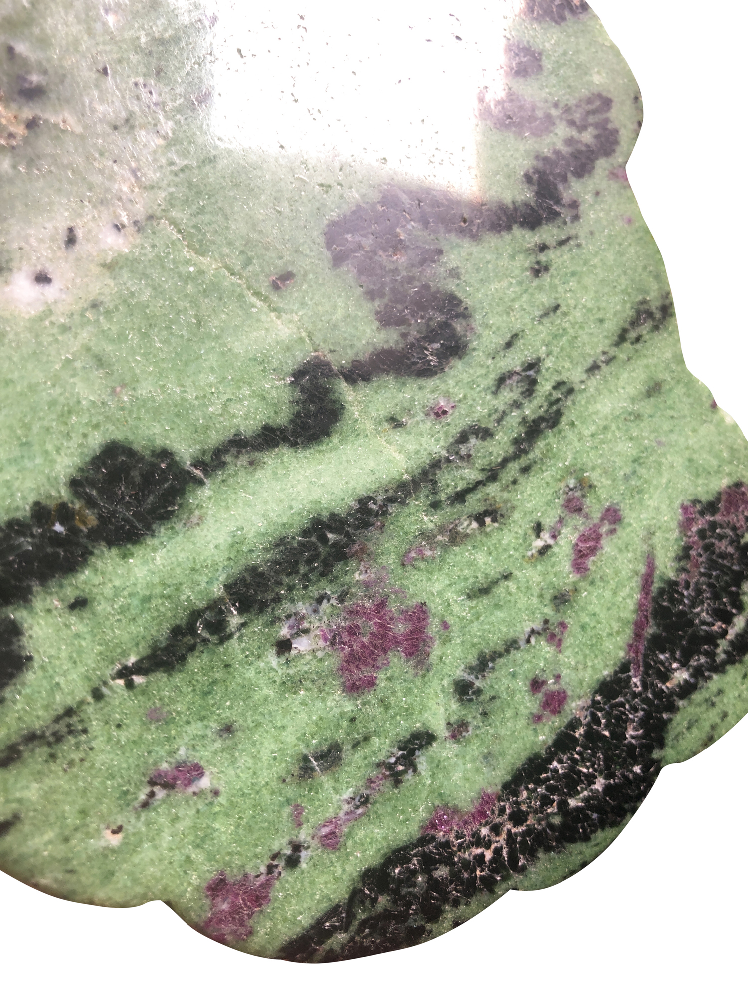 Fuchsite con radici di rubino intagliata