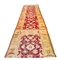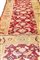 Il tappeto si sviluppa con una serie di palmette incolonnate sull’asse centrale, accompagnate da foglie arcuate. Lo stesso motivo si ripete nella bordura che però risulta essere originale soltanto nella parte sinistra. La bordura di destra è completamente ritessuta, il che induce a pensare che il tappeto in origine avesse formato completamente diverso e non di corsia.