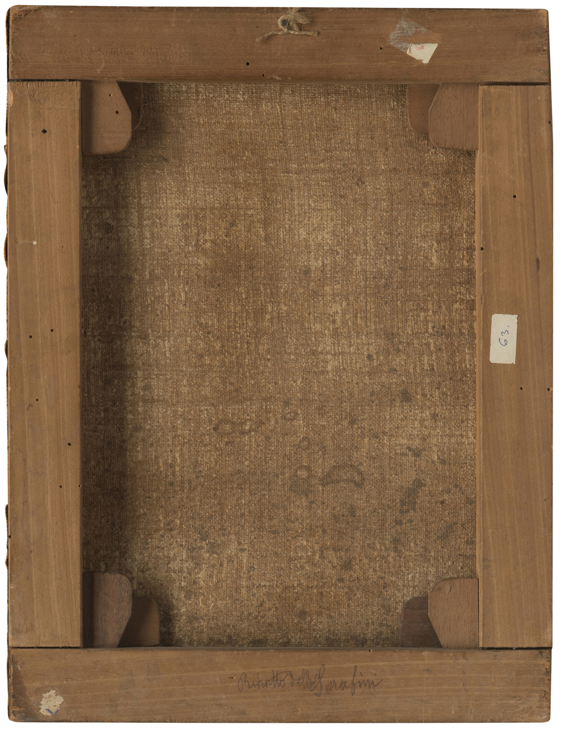 Elementi distintivi: una etichetta con il numero 63 e lacerto di una seconda etichetta