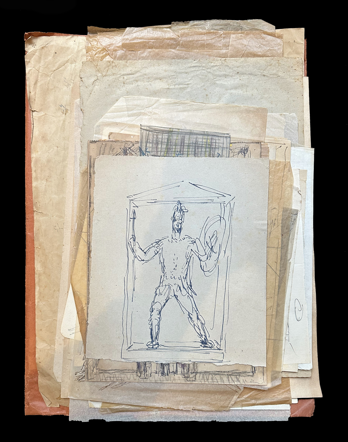 matita, inchiostro, tempera e tecnica mista su carta, carta velina e cartoncino