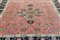 Medaglione centrale di forma stellare, sopra un fondo di un raro color salmone, circondato da una bordura in bianco e nero con palmette e foglie intrecciate.