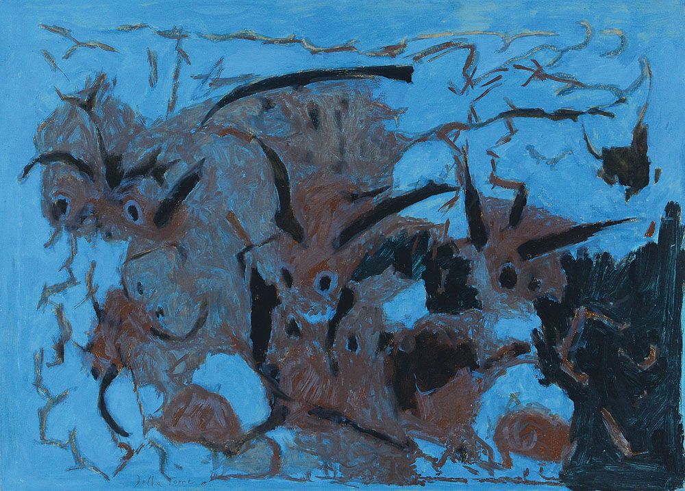 tecnica mista su carta intelata cm. 49x69, firma in basso a sinistra, titolo e anno al retro sul telaio.