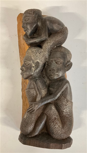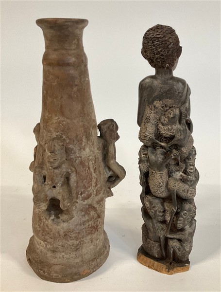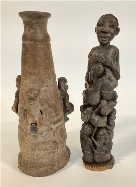 Arte africana. Lotto composto da un vaso in terracotta con figure di scimmie in
