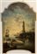 Scuola dell'inizio del secolo XIX Scena portuale olio su tela sagomata (cm 145