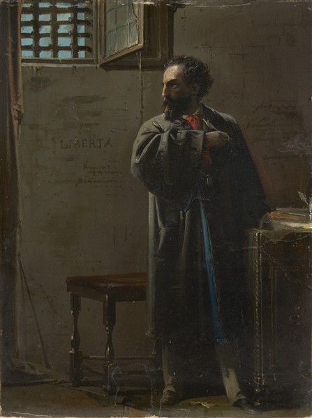 Scuola lombarda del secolo XIX "Felice Orsini in carcere" olio su cartone (cm