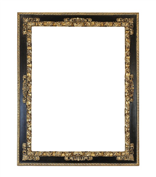 Lotto composto da sette diverse cornici in legno e altri materiali in parte dorate di diversa epoca e misura (cm max 145x116) (difetti)