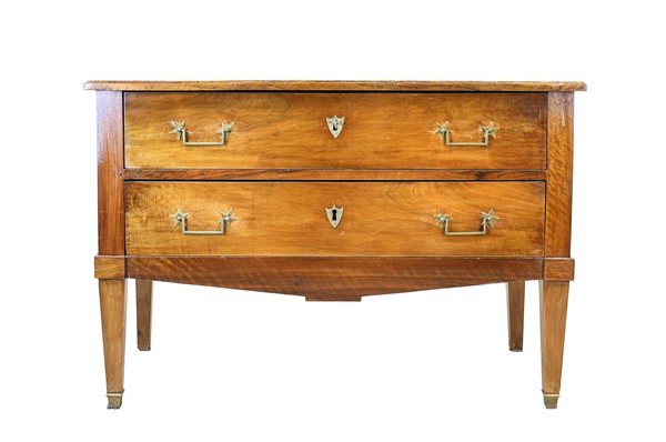 Cassettone in ciliegio con fronte a due cassetti e gambe rastremate. Secolo XIX