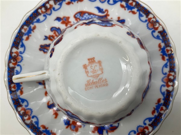 Lotto composto da due servizi da tè di cui uno manifattura Spode, Camilla, Copeland England in ceramica con decalcomanie composto da undici piatti da dolce, nove tazzine con piattini, teiera, lattiera e zuccheriera; uno di manifattura tedesca Sehaller in porcellana bianca con decori orientali. Composto da dodici tazze con piattini, teiera, lattiera e zuccheriera ( lievi difetti)