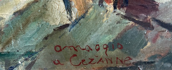 Ignoto del secolo XX "Omaggio a Cezanne" olio su compensato (cm 40x50) titola