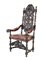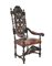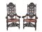 Coppia di seggioloni in rovere intagliato, schienale traforato a motivi vegetali, seduta rivestita in pelle borchiata, braccioli terminanti a ricciolo, gambe con raccordo e traversa tornita. Secolo XIX (cm 76x141x60) (difetti e restauri)