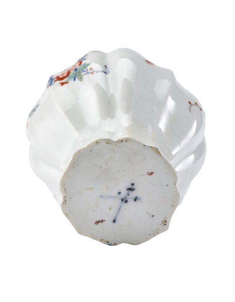 Manufacture of Meissen, 18th century. Polychrome porcelain tea holder with Kakiemon decoration (h. cm 10.5) (defects)