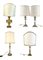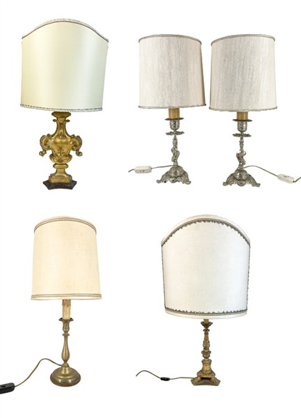 Lotto di di cinque diverse lampade d'appoggio di cui due con antico sostegno le