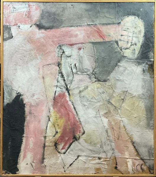 Ignoto "composizione astratta" tecnica mista su carta applicata su compensato (cm 114x100)
