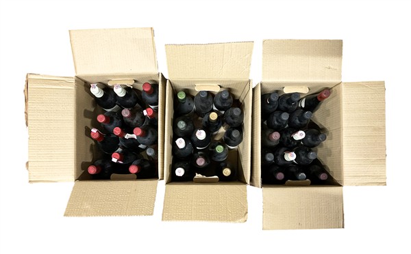 Lotto composto da oltre 20 bottiglie di vino in tre cartoni, tra le quali La st