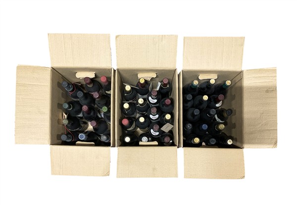 Lotto composto da oltre 20 bottiglie di vino in tre cartoni, tra le quali Lunga