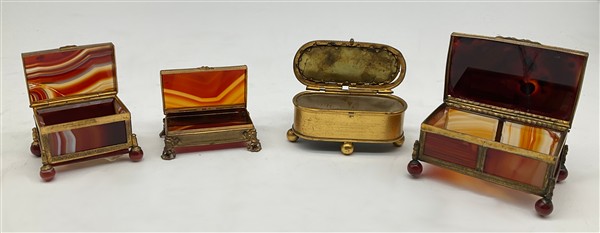 Lotto composto da quattro diverse scatoline in metallo dorato, pietra dura di c
