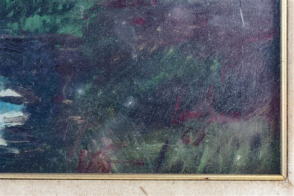 Lomboni "Scorcio montano" 1959 olio su tela (cm 50x60) firmato e datao in bass