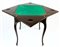 Tavolino da gioco "a fazzoletto" in mogano con piano apribile a spicchi e rivestito con panno verde, vano porta oggetti con cassetto nella fascia, gambe mosse con decoro intagliato a foglie (cm 60x75x60) (difetti)