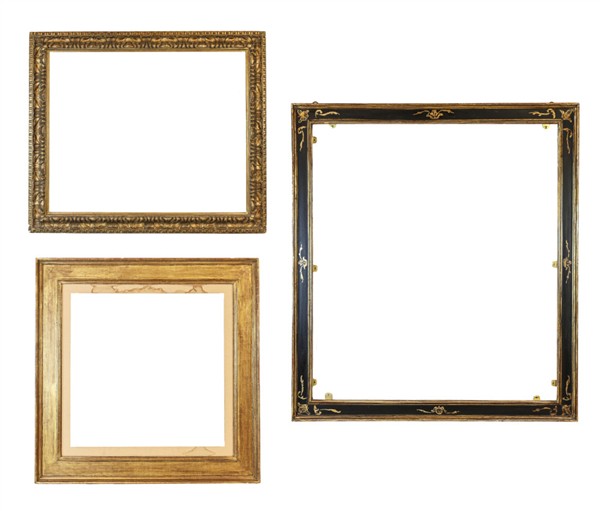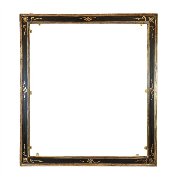 Lotto composto da due cornici a cassetta di cui una parzialmente ebanizzata ed una cornice in legno intagliato a decoro fogliaceo e dorata (cm max 132x156) (difetti)