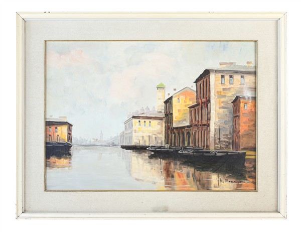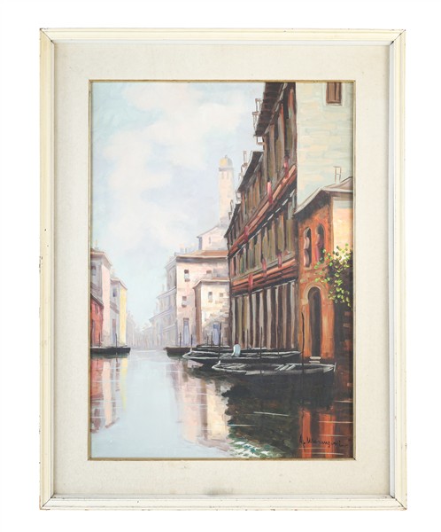 A. Marangoni "Coppia di Vedute veneziane" olio su tela (cm 70x50) firmate in