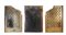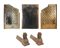 Lotto composto da un parafuoco in metallo a tre ante ed una coppia di alari in ferro con teste muliebri (difetti)