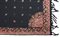 Scialle Kashmir, Inghilterra, fine secolo XIX. Tessuto a mano in lana con armatura diagonale. Decoro floreale policromo di sipirazione provenzale su fondo nero formato da quattro angolari e piccoli fiorellini stilizzati sparsi sul campo (cm 180x175) (lievi difetti)